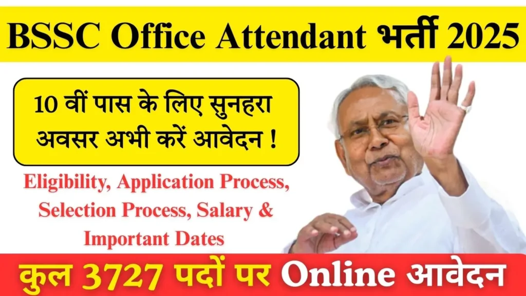 BSSC Office Attendant Bharti 2025 बिहार कर्मचारी चयन आयोग (BSSC) ने वर्ष 2025 के लिए कार्यालय परिचारी (Office Attendant) और